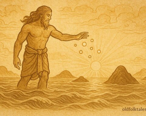 In the time before time, when the gods still walked among men and the world was young, the sea lay silent and still. Its surface shone like a mirror, unbroken by wave or wind. Fish drifted lazily in the depths, and the shores of Tonga rested peacefully, kissed only by